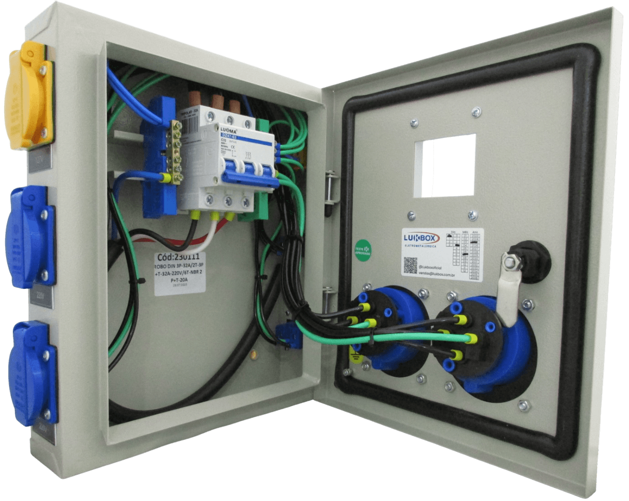 Seja o primeiro a avaliar “QUADRO ROBÔ (1 MINI DISJUNTOR TRIPOLAR 32A | 2 TOMADAS NA PORTA 3P+T 220V 32A 9H | 2 TOMADAS NBR LATERAL 2P+T 127V 20A AM | 4 TOMADAS NBR LATERAL 2P+T 220V 20A AZ | CABO PP 4X6MM) CÓD: 230111”