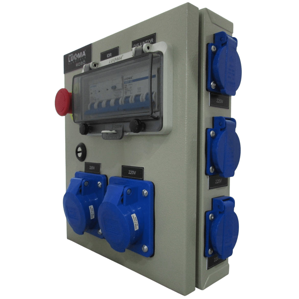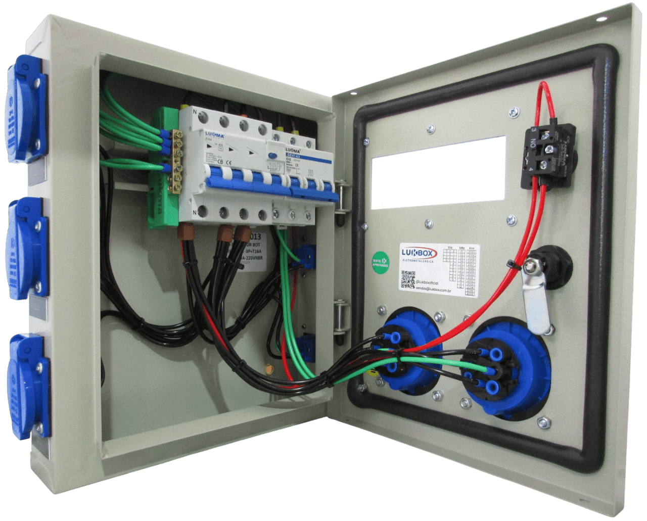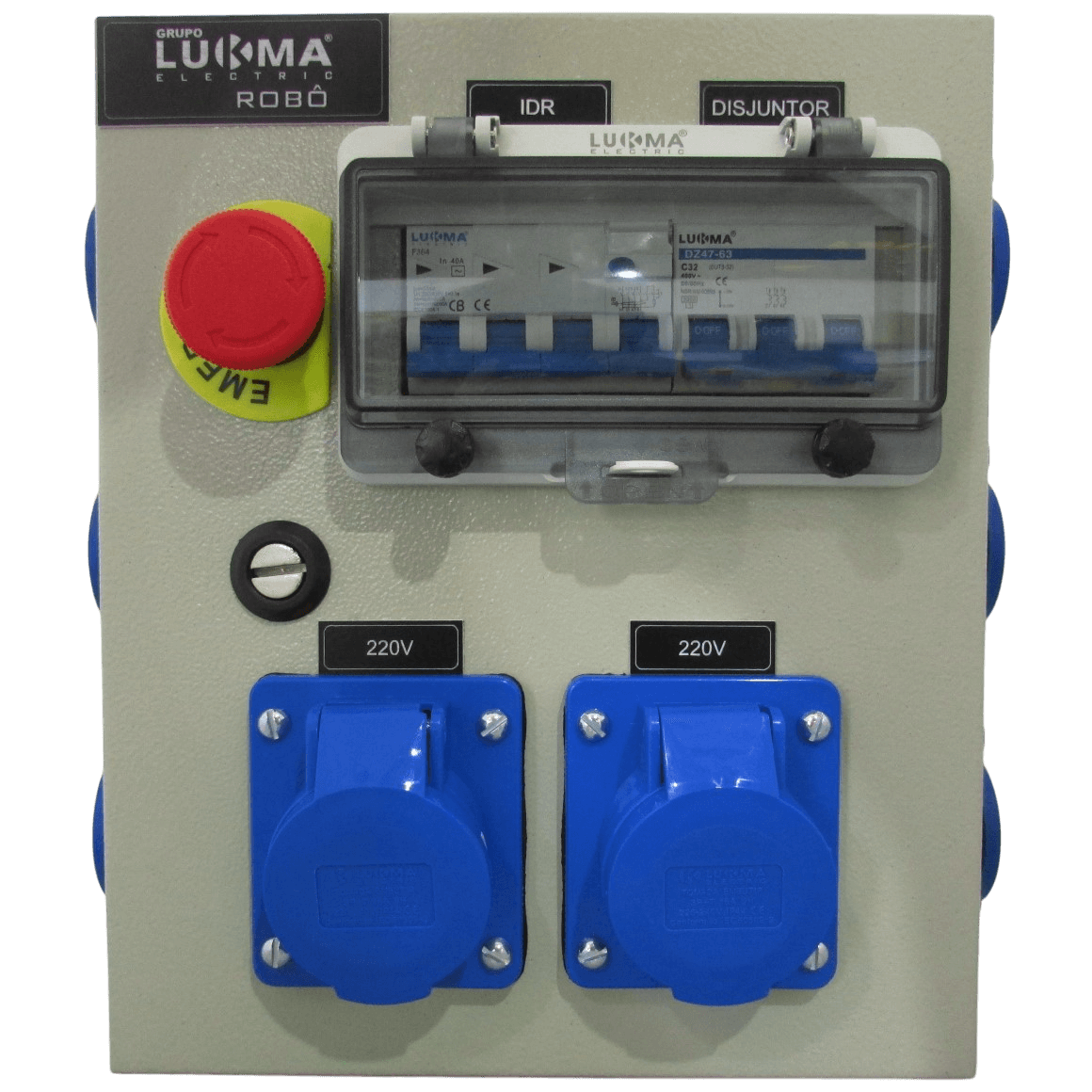 Seja o primeiro a avaliar “QUADRO ROBÔ (1 MINI DISJUNTOR TRIPOLAR 32A| 1 DR TETRAPOLAR 40A 30MA| PORTA C/ BOTÃO DE EMERGÊNCIA E 2 TOMADAS 3P+T 220V 16A 6H | 6 TOMADAS NBR LATERAL 2P+T 220V 20A AZ) CÓD: 230013”